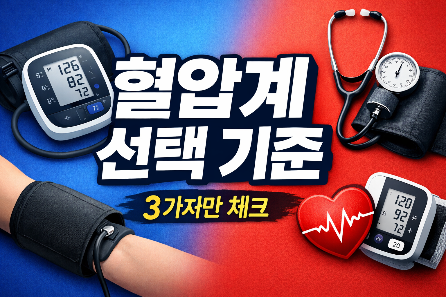 한 줄 결론: 혈압계 선택 기준은 ① 임상 검증(Validated) + ② 상완형(위팔 커프) + ③ 내 팔둘레에 맞는 커프 3가지만 지켜도 실패 확률이 크게 줄어듭니다.혈압계는 한 번 사면 몇 년은 씁니다. 그런데 막상 사놓고 “수치가 들쭉날쭉하다”, “병원 혈압이랑 다르다”는 이야기가 나오는 이유는 대부분 단순합니다. 기기 선택(검증/형태/커프)에서 한 번, 측정 습관(자세/반복)에서 한 번, 총 두 번 흔들리기 때문입니다.오늘 글에서는 ‘혈압계 선택 기준’을 구매 직전 체크리스트로 정리했습니다. 끝까지 읽으면, 광고나 후기보다 더 확실한 기준(검증 확인법, 커프 선택, 손목형 예외 상황)을 잡을 수 있습니다.1) 상완형과 손목형 중 무엇을 선택해야 할까요?요약: 혈압계 선택 기준에서 기본값은 상완형..
